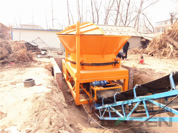 ? ? ? ? ?圆盘式树根破碎机工作时,由电机带动转子进行高速旋转,同时进料斗也在电机的带动下进行缓慢的旋转,物料经抓机投放进料斗,料斗在旋转的同时内壁上的拨料齿会将物料均匀的拨到转子上,高速旋转的转子碰到物料经由转子上刀片的切削和撕扯实现物料的初步破碎,进过初步破碎的物料无在自身重力和转子冲击力的作用下掉在破碎腔内的筛网上,符合要求的物料会通过筛网排出,而不符合要求的会在破碎腔内进行二次甚至三次的破碎加工直至符合要求。